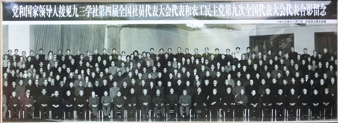 该图片拍摄于1983年12月,记录了邓小平同志、九三学社创始人许德珩先生等党和国家领导人接见九三学社第四届全国社员代表大会代表与农工民主党第九次全国代表大会代表的历史场景。我校九三学社基层组织创始人商永健先生也参与了本次会议。作为九三学社在浙江师范大学的创建者,商永健先生此次赴京参会并接受接见,反映了我校早期参与多党合作事业的实践,也标志着学校民主党派发展的重要阶段。在商永健等前辈的努力下,九三学社浙师大基层组织逐步发展,成为学校事业发展的积极力量。四十载光阴流转,这张合影作为重要历史资料,持续激励着新一代师生传承优良传统,在统一战线工作中不断前行。