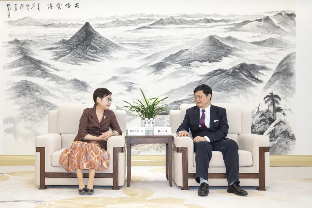 该图片拍摄于2024年10月12日,香港特别行政区前任行政长官林郑月娥到访浙江师范大学,在正阳中心报告厅作“坚持和完善‘一国两制’在香港的实践”主旨演讲,并与师生互动交流。浙师大党委书记蒋云良代表学校“热烈欢迎和诚挚感谢”,表示学校正锚定“特色鲜明的一流研究型大学”目标,希望“为推动浙港高水平合作和高质量发展贡献更多浙师力量”。林郑月娥感谢学校对香港学子的照顾,指出“香港正大力推动科技创新发展”,愿“搭建更多桥梁”,深化双方在学科建设、人才培养等领域合作。报告结束后,林郑月娥与师生围绕国际关系、青年发展等话题深入交流,并参观非洲博物馆。
