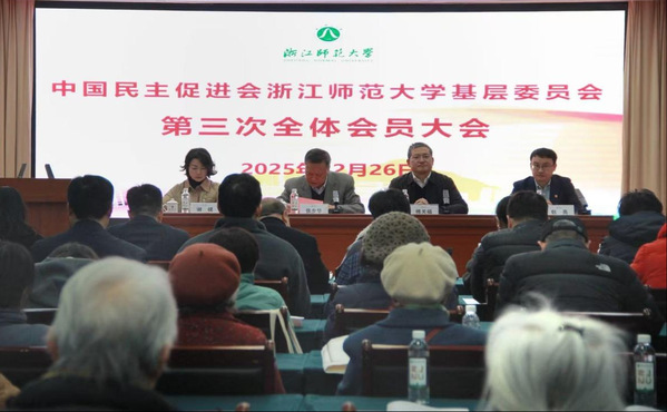 12月26日下午,中国民主促进会浙江师范大学基层委员会第三次全体会员大会在行政中心多功能会议室召开,选举产生第三届委员会。金华市政协副主席、民进金华市委会主委张少华,浙师大党委副书记傅关福出席会议。