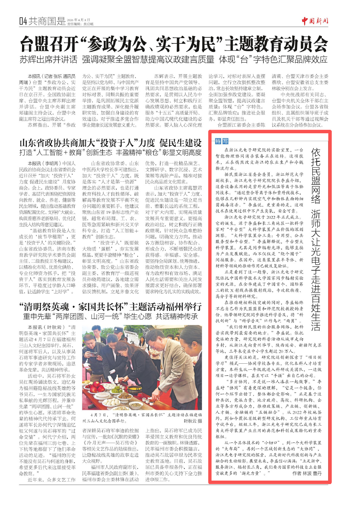 展望未来,李盛信心满满:“立足浙中、服务浙江、辐射长三角,我们要为国家的科技自立自强贡献更多的‘浙光力量’。”(完)